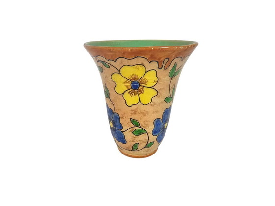 Este es un artículo vintage. Esto significa que ha sido usado. Los artículos no son nuevos ni perfectos, ¡pero son muy bonitos! La mayoría de los artículos vintage muestran signos de uso. El grado de estos signos se indica en la descripción. Las fotos forman parte de esta descripción. Por favor, examínelas detenidamente. Los artículos vintage (es decir, usados) a veces presentan variaciones de color, desgaste irregular o desgaste normal. Tenga esto en cuenta al realizar la compra. Este precioso jarrón de loza de Plateelbakkerij de Iris en Gouda es un magnífico ejemplo del arte cerámico holandés del periodo comprendido entre 1925 y 1968. Con su vibrante decoración floral y su rica paleta de colores amarillo, azul y verde, este jarrón añade un toque de elegancia Art Déco a cualquier interior.