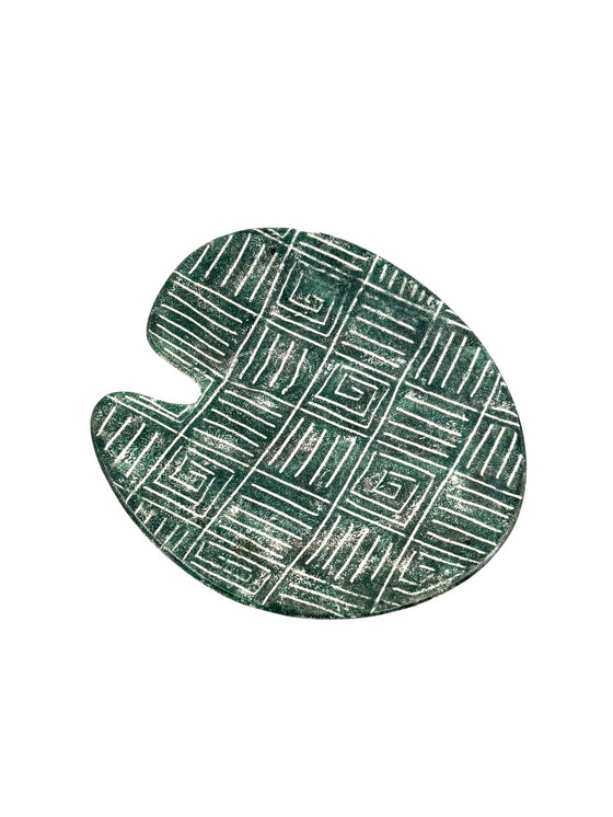 Plato de cerámica verde de mediados de siglo, Francia, década de 1960