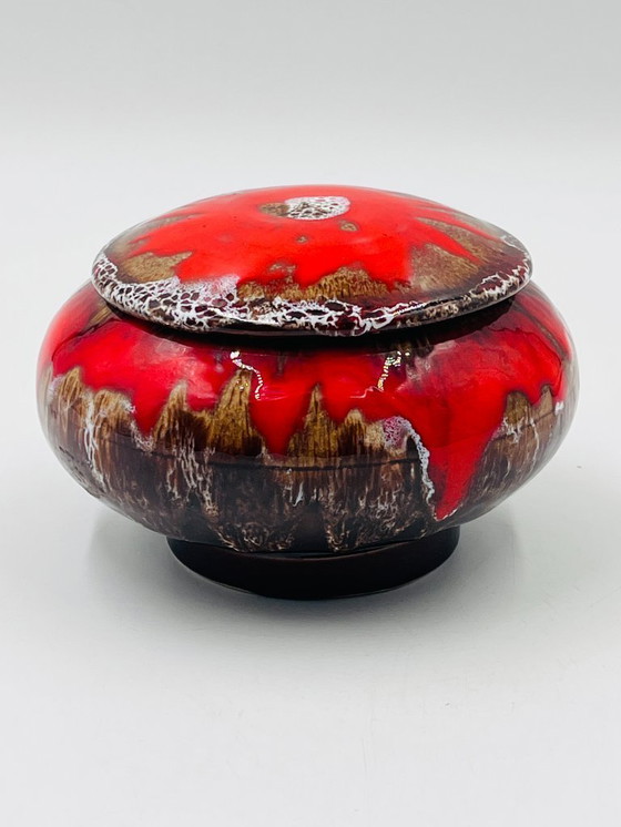 Descubra esta magnífica dulcera roja de Vallauris, una pieza excepcional que realzará su interior. Con sus intensos tonos rojos y motivos artísticos, evoca la elegancia y la artesanía de la renombrada región de Vallauris, famosa por su cerámica artística.