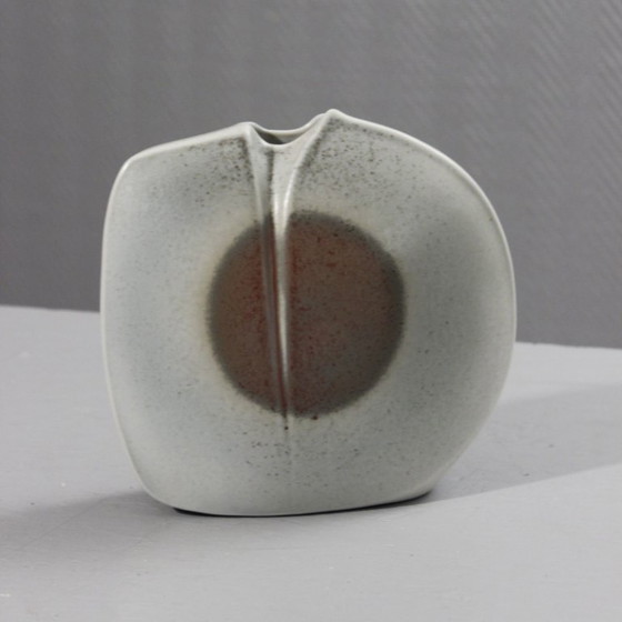 Porcelana Virebent - Jarrón con forma de lente y decoración abstracta, diseño modernista, década de 1970