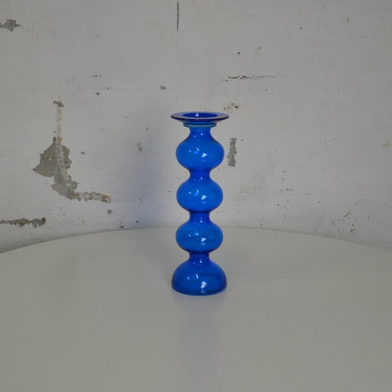 Este candelabro de vidrio soplado a mano, diseñado por Anne Nilsson para Ikea, es un hermoso ejemplo del diseño de los años 90. Con su vibrante color azul y su elegante forma, añade un toque de estilo a cualquier habitación. Perfecto para crear un ambiente acogedor en tu hogar.