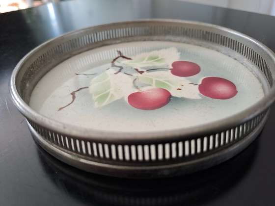 Este posavasos vintage es un complemento encantador para cualquier mesa. Tiene un borde metálico y una superficie de cerámica con un colorido diseño de cerezas. Ideal para proteger las superficies de arañazos y manchas, al tiempo que añade un toque de estilo retro.