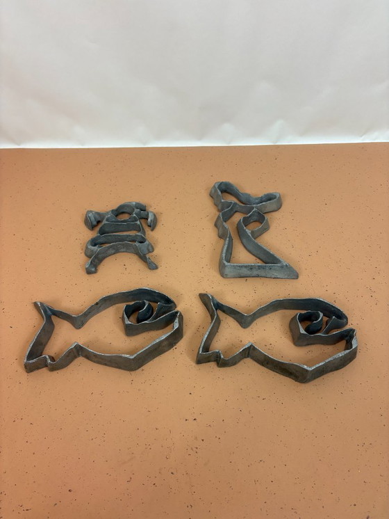 Posavasos de aluminio fundido diseñados por Teun Kees. Disponibles en 3 estilos: dos peces, una mujer y otra figura de animal.