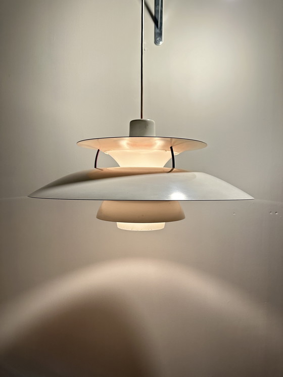 Diseñada por Poul Henningsen y producida a partir de 1958 por Louis Poulsen, la PH5 cuenta con pantallas de aluminio, a diferencia de la versión original, que era de cristal.
