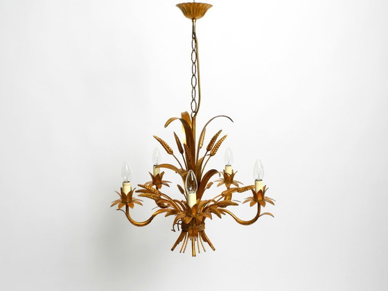 Preciosa lámpara de araña de metal dorado de 5 brazos de la década de 1970, obra de Hans Kögl.