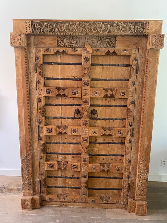Armario antiguo, elaborado a partir de una auténtica puerta de porte indio. Sus intrincadas tallas y su robusta apariencia lo convierten en una pieza llamativa que combina funcionalidad y estética. Ideal para guardar tus pertenencias con estilo.