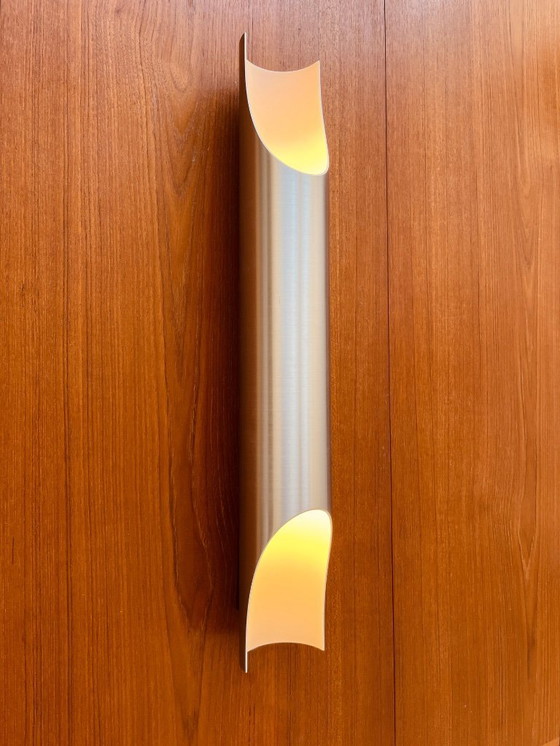 Esta llamativa lámpara de pared XL Fuga fue producida por Raak y diseñada por la arquitecta y diseñadora industrial finlandesa Maija Liisa Komulainen a finales de la década de 1950.
