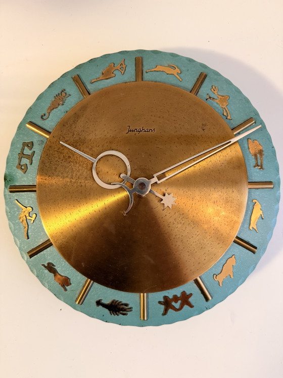Este exquisito reloj Junghans Zodiac es una joya escondida, perfecto para coleccionistas y amantes de los relojes vintage. Su diseño único presenta una llamativa combinación de oro y turquesa, adornada con los doce símbolos del zodíaco, lo que lo convierte no solo en una pieza funcional, sino también en un elemento que da pie a conversaciones. Su elegante esfera muestra la meticulosa atención al detalle que caracteriza a Junghans. Ya sea en una sala de estar o en un estudio, este reloj añade un toque de sofisticación e intriga a cualquier espacio.