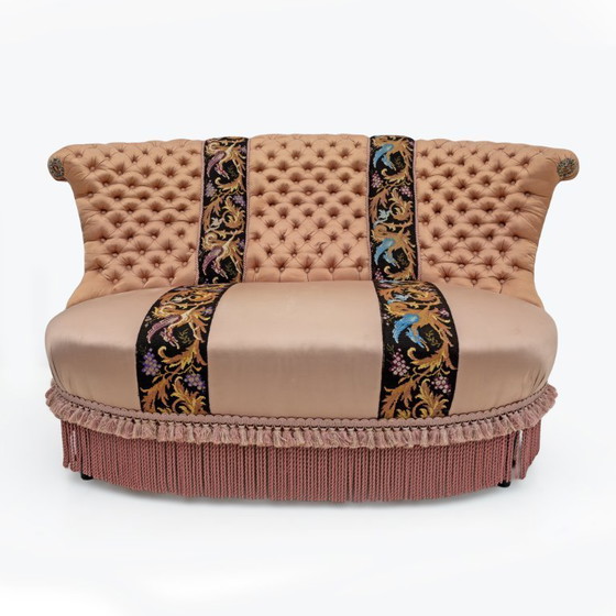 Raro sofá de satén de seda Napoleón III del siglo XIX