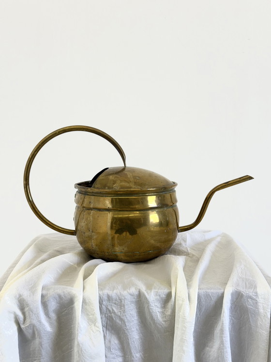 Esta antigua regadera de latón tiene un aspecto desgastado y con carácter, y es un objeto decorativo y funcional de gran belleza. El latón podría pulirse para recuperar su brillo, pero se ha dejado deliberadamente en su estado actual para preservar su auténtico aspecto vintage.