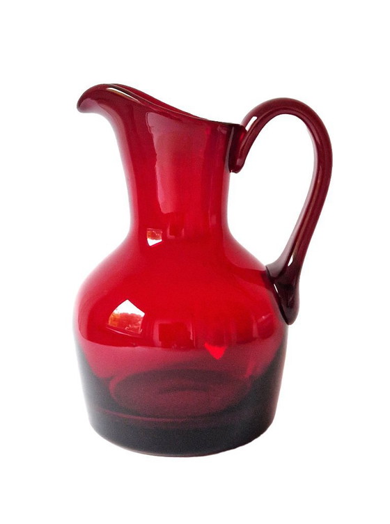 Precioso jarrón/jarra "Rubinen", soplado a mano, de color rojo rubí.
