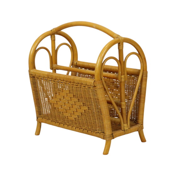Bandeja de lectura vintage, revistero de bambú y ratán, estilo totalmente bohemio, hacia los años 80, Países Bajos.