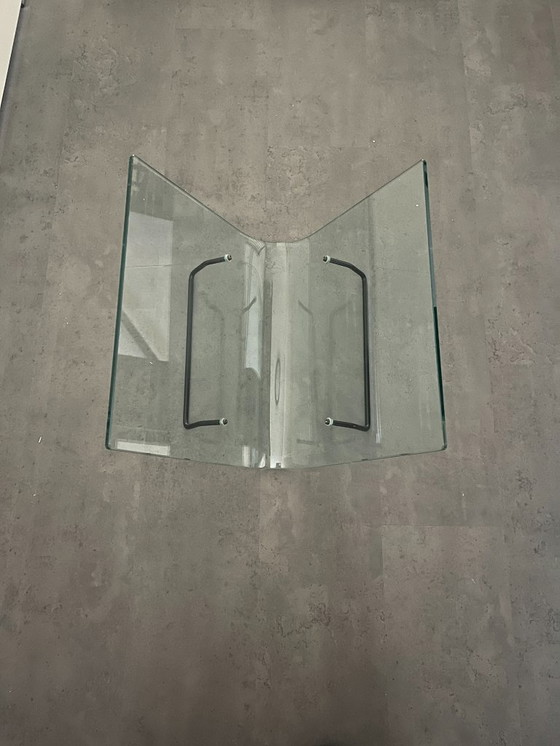 Precioso revistero de cristal de Fiam Italia. Se encuentra en perfecto estado; el cristal está intacto y solo presenta dos pequeñas muescas en la base.