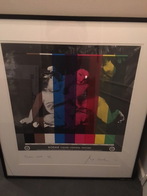 Réplica única firmada y numerada del artista Rob Scholte, conocido por sus incisivas opiniones sobre la reproducción, la cultura visual y el arte pop. Esta obra muestra una imagen clásica perturbada por los coloridos parches de control de color Kodak, un juego típico de Scholte con el significado, los medios y la reinterpretación.