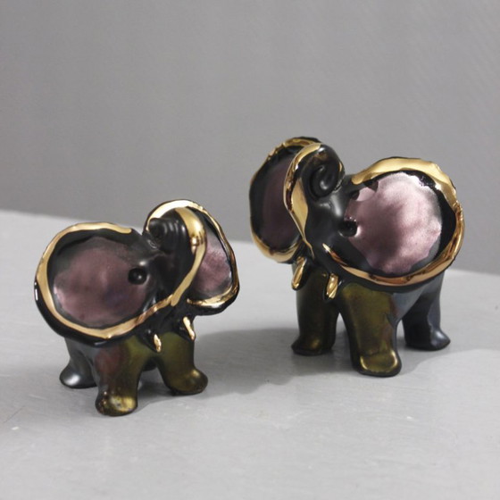 Excepcional par de figuritas de elefantes de Romolo Verzolini para Studio Errevi, Italia, circa 1970.
