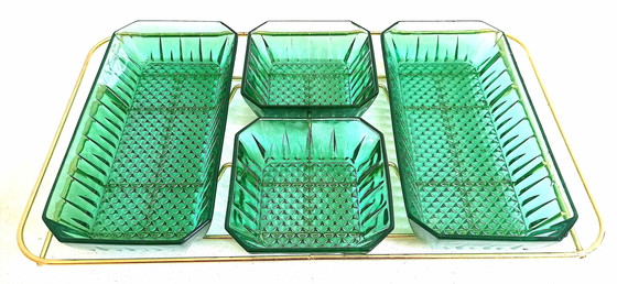 Compuesto por 5 ramequines de vidrio prensado verde esmeralda