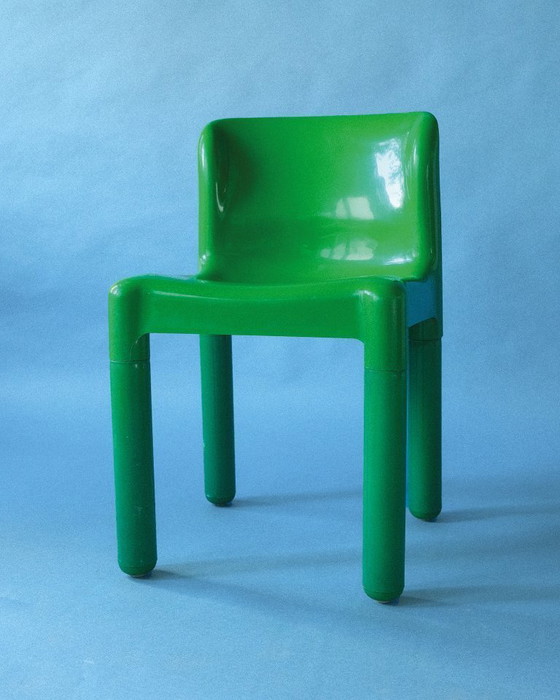 Silla 4875 verde brillante de Carlo Bartoli para Kartell. Diseño icónico italiano de los años 70 en polipropileno moldeado, con asiento de una sola pieza y patas desmontables.