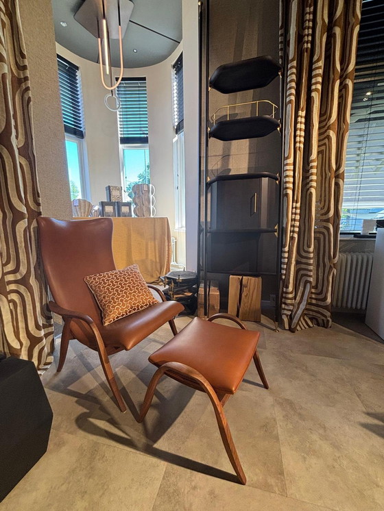 Un clásico por excelencia: la silla Signature, con reposapiés incluido. Una combinación hermosa y lujosa. Fabricada en un precioso cuero marrón coñac y una estructura de nogal. La silla Signature Lounge es un diseño de Frits Henningsen. El fabricante de muebles danés diseñó la silla en 1954, convirtiéndola en su última creación. Inicialmente, se produjeron menos de veinte unidades, pero afortunadamente, Carl Hansen la reintrodujo. El diseño se caracteriza por las líneas ligeras y elegantes de la madera, exquisitamente trabajada, los reposabrazos flotantes y las suaves y acogedoras curvas del asiento. La silla incluye un reposapiés.