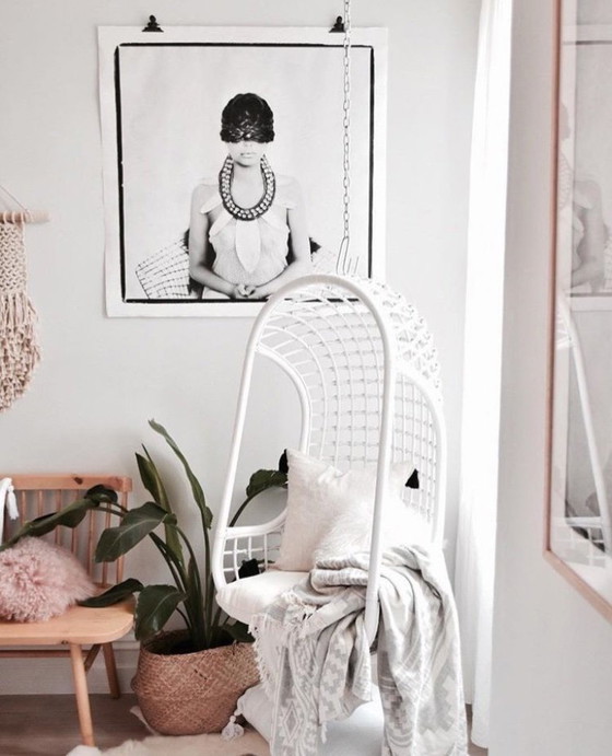 Imagínate una tarde tranquila en tu sala, con un buen libro en la mano, meciéndote suavemente en esta preciosa silla colgante de HK Living. Esta silla colgante de ratán blanco no solo es un deleite para la vista, sino también un lugar maravilloso para relajarse por completo.