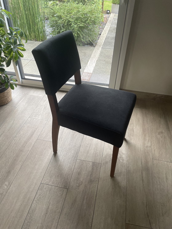 Conjunto de 6 sillas Brindisi, tela negra, patas de nogal, estructura de madera maciza, 46x86x60