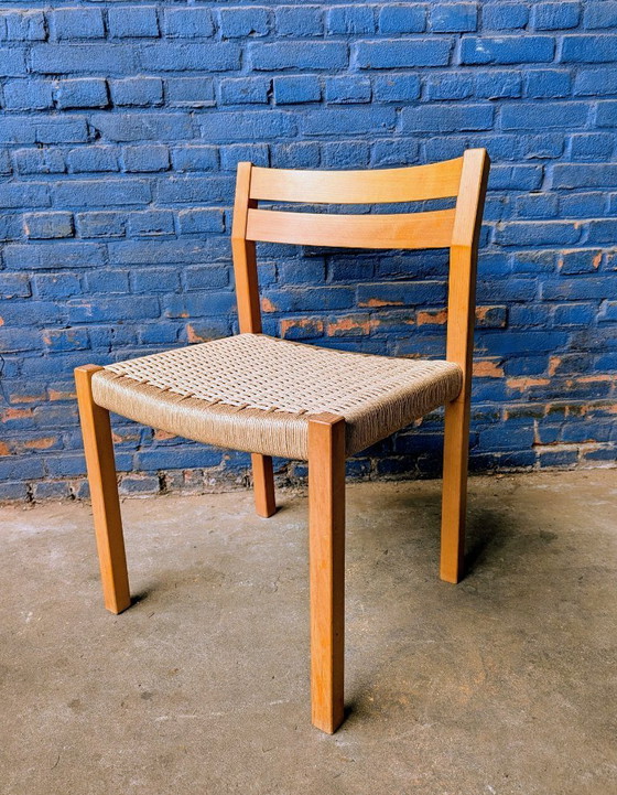 Silla de comedor J.L. Moller modelo 401 de roble y cuerda de papel