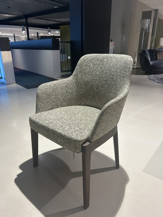 Silla de comedor Chelsea de Molteni&C. La silla de comedor Chelsea de Molteni&C, sin reposabrazos, combina un diseño moderno con la artesanía tradicional. Tapizada en eucalipto WD142 Ver. Oliva y con una base de madera maciza en roble grafito, esta silla ofrece comodidad y estilo. Diseñada por Rodolfo Dordoni, la silla de comedor Chelsea de Molteni&C encarna la esencia del diseño contemporáneo con un guiño a la artesanía tradicional. La combinación de materiales cuidadosamente seleccionados y una cuidada elaboración convierte a esta silla en una pieza de mobiliario atemporal, funcional y elegante. Hay disponibles tres sillas sin brazos y tres con reposabrazos. Precio por unidad (con reposabrazos): Versión: Eucalipto/WD142 Ver. Oliva. Base: Roble grafito.
