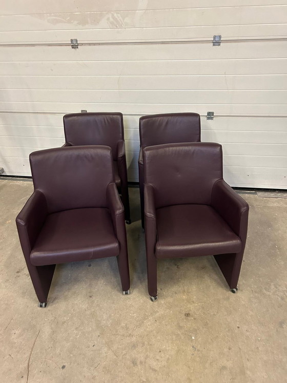 Sentarse con estilo se vuelve fácil con la silla de comedor Staccato. Este elegante sillón combina comodidad y clase. Totalmente tapizado en lujoso cuero de alta calidad, el Staccato irradia puro refinamiento. Sus líneas elegantes aportan un toque moderno a cualquier interior. Gracias a sus suaves ruedas de parqué, puede mover la silla fácilmente sin dañar el suelo; ideal para la mesa del comedor o en una sala de reuniones. Lamentablemente, dos de las sillas tienen daños en la parte inferior (ver foto).