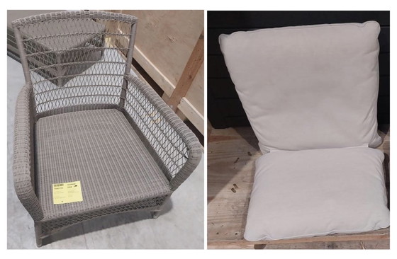 El tejido texturizado le confiere una ligereza etérea y realza su carácter contemporáneo. El asiento ancho y los reposabrazos integrados garantizan una postura relajada, ideal para patios, jardines o espacios exteriores amplios. El tejido abierto crea una armoniosa combinación de estabilidad y elegancia veraniega. Incluye cojines a juego. Dimensiones: 68 x 57 x 97/42 cm.