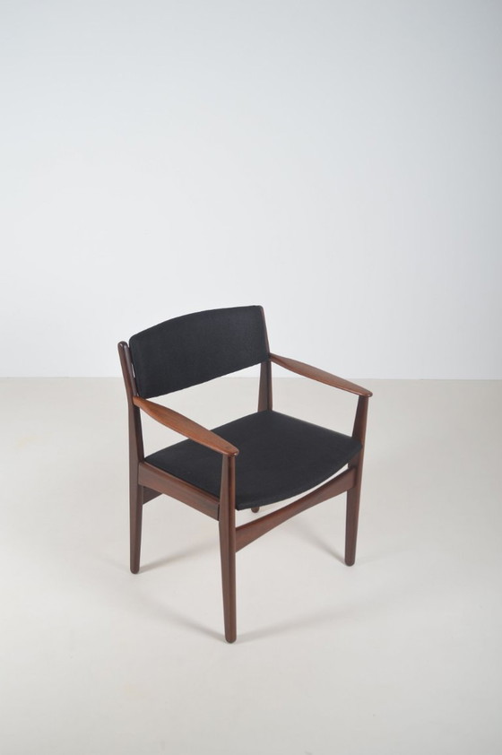 Silla de oficina danesa modelo 142, diseñada por Poul Volther en la década de 1950. Fabricada por Frem Røjle, esta silla es un magnífico ejemplo del diseño danés de mediados de siglo.