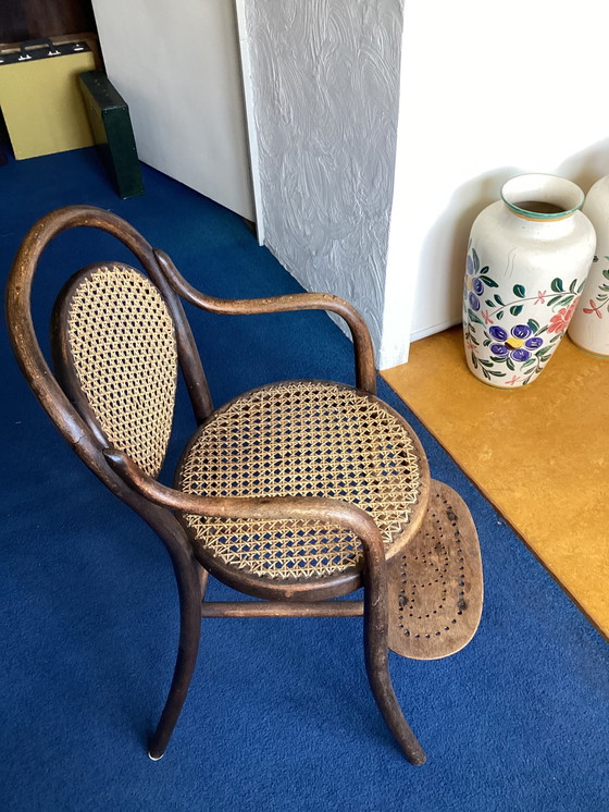 Esta silla infantil Thonet, antigua y original, es un bello ejemplo de artesanía y diseño. Su diseño vintage la convierte en una pieza única para cualquier colección.