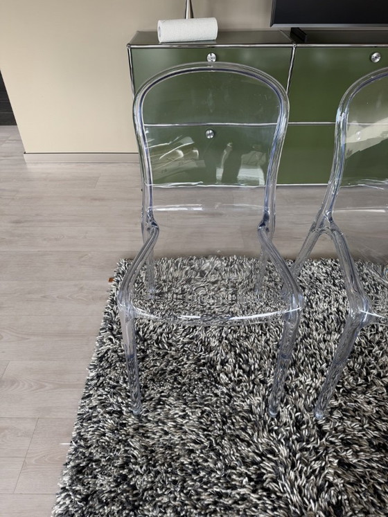 CondiciónMuy buenaColoresTransparenteMaterialPlásticoNúmero de artículos4Altura83 cmAnchura45 cmProfundidad53 cmAltura del asiento44 cm
