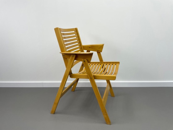 Preciosa silla plegable Rex original diseñada en 1952 por Niko Kralj y producida por Stol, antigua Yugoslavia. La silla plegable tiene armazón, respaldo y asiento de haya lisa. Las uniones atornilladas son de latón (primera serie).