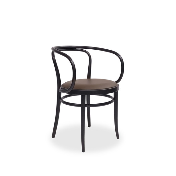 Silla Thonet 209 P con asiento de cuero marrón y madera curvada negra