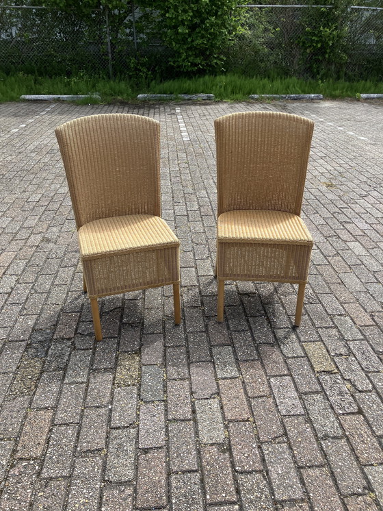 Dos sillas de comedor Loom. Estas sillas son usadas y presentan signos de desgaste.
