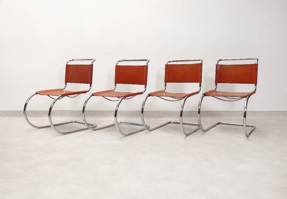 Cuatro sillas cantilever vintage MR10 diseñadas por Ludwig Mies van der Rohe, fabricadas por Fasem Italia.