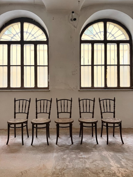 Este juego de 5 sillas Thonet es un hermoso ejemplo de artesanía vintage. Fabricadas con madera de alta calidad y con asientos clásicos de ratán, estas sillas ofrecen estilo y comodidad. Su elegante diseño es perfecto para añadir un toque vintage a cualquier comedor. A pesar de algunos ligeros signos de uso (ver fotos), estas sillas se mantienen robustas y funcionales, lo que las convierte en un complemento perfecto para la decoración de su hogar. Aportarán elegancia y suavidad a su hogar.