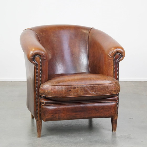 Se subasta este robusto, elegante y cómodo sillón club de piel de oveja color coñac con un diseño atemporal. ¿Busca un sillón club cómodo con un diseño elegante y un acabado natural? ¡No busque más! Este sillón club de piel de oveja presenta un hermoso color coñac y un diseño atemporal. Su acabado con tachuelas decorativas le da un toque de lujo. Cuenta con un cojín de asiento suelto y ofrece una excelente comodidad. Años de uso han mostrado signos de desgaste, como se muestra en las fotos. Su estructura se encuentra en buen estado y lista para su uso inmediato. Con un cuidado y mantenimiento adecuados, este elegante sillón club le proporcionará muchos años de disfrute. Nota: Las dimensiones indicadas en nuestro anuncio son las dimensiones principales. Las fotos forman parte de la descripción. Dimensiones: Alto: 80 cm, Ancho: 77 cm, Fondo: 90 cm, Alto: 48 cm, Fondo: 56 cm. Número de artículo: 17012504