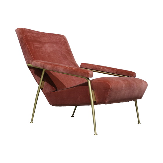 Sillón Molteni&C Colección Gio Ponti - D.153.1 en buen estado, sin signos visibles de desgaste. Diseñado en 1953. La estructura es de latón satinado y la tapicería, de color rosa terciopelo. El sillón D.153.1 complementa la colección Gio Ponti, presentada en el Salone del Mobile de 2012.