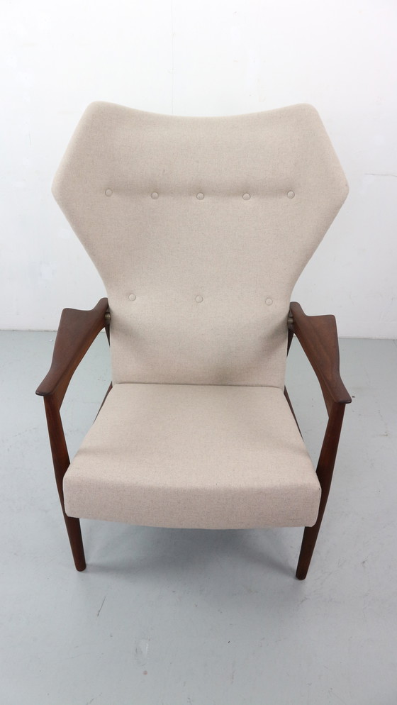 Sillón danés ajustable con respaldo alto en teca, de Ib KOFOD LARSEN
