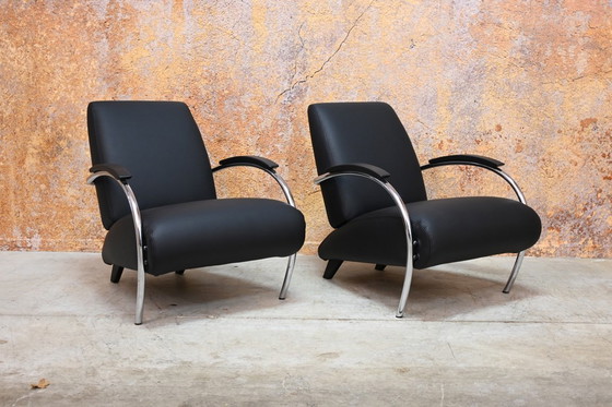 Sillón de diseño Gelderland 5470 retapizado en cuero negro