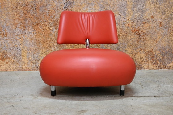 Hermoso punto de atracción de la marca holandesa de diseño TOP Leolux. Este sillón Leolux Pallone PA (la variante más grande) está tapizado en cuero de primera calidad y se encuentra en perfecto estado.