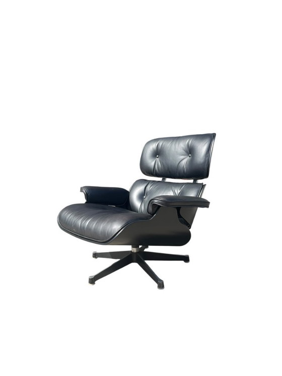 El sillón Eames negro sobre negro fue fabricado por Fehlbaum en la década de 1970 bajo licencia de Herman Miller.