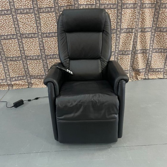 Disfrute de la máxima comodidad con este moderno sillón elevador de piel negra. Diseñado para aportar estilo y funcionalidad a su hogar, este sillón elevable eléctrico facilita el levantarse y ofrece apoyo adicional a personas con movilidad reducida. El respaldo está integrado en el propio sillón. Con una profundidad de asiento de 50 cm, este sillón también es adecuado para personas de baja estatura.