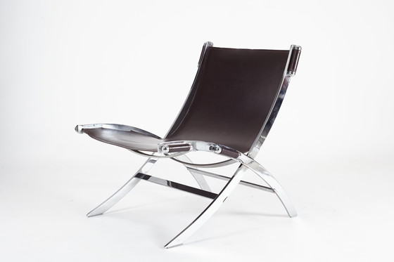 sillón italiano postmoderno de cuero y diseño cromado, años 80