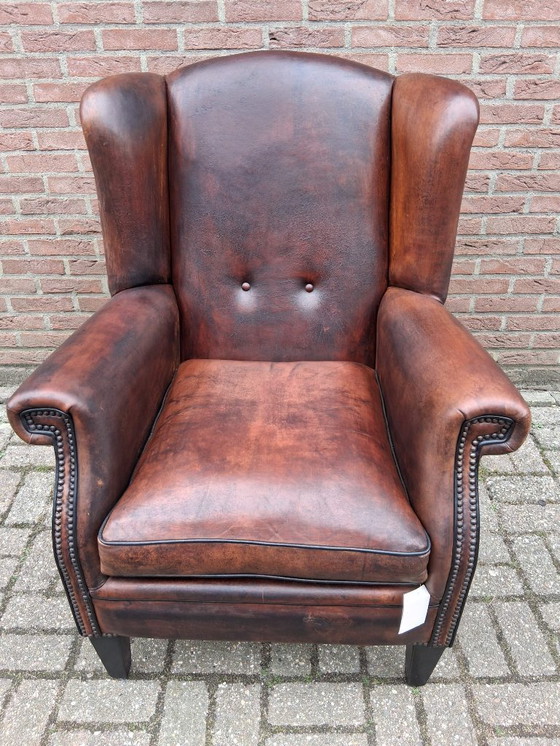 Un clásico sillón orejero de piel de oveja con un aspecto robusto y envejecido. Este sillón combina un carácter sólido con un asiento cómodo y de alta calidad. Gracias al uso de piel de oveja auténtica, el sillón presenta una pátina única y cálida que se integra a la perfección en cualquier interior.