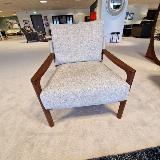 Sillón Vera de Porada. El sillón Vera, de elegante diseño, pertenece a la marca italiana de diseño contemporáneo porada.it. Su estructura es de nogal macizo de gran belleza. El respaldo está tapizado en piel de silla de montar de alta calidad. El asiento es muy cómodo. Este sillón es una joya para cualquier estancia. ¡Se encuentra en perfecto estado!