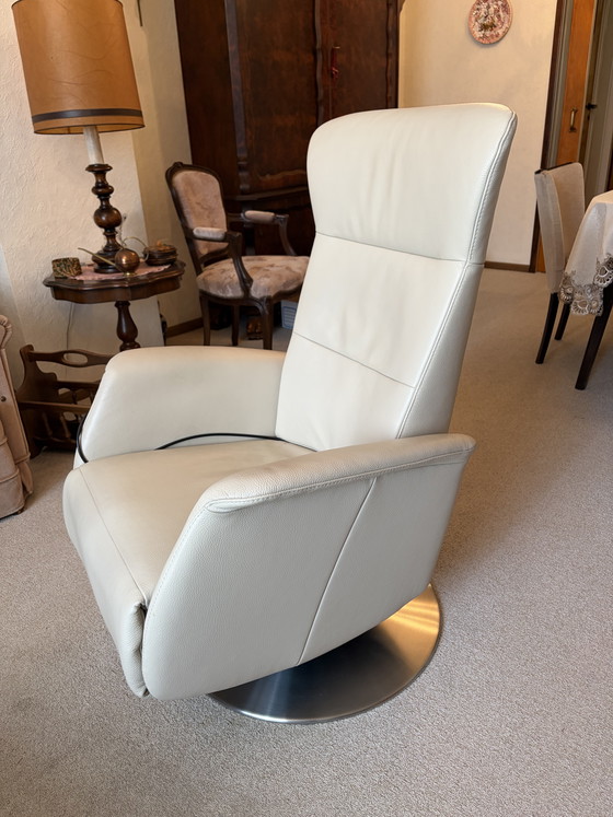 Cómodo sillón reclinable Well-Fair, con ajuste eléctrico y tapizado en piel de alta calidad. Incluye mando a distancia con cable en espiral para un manejo sencillo. Nota: el reposapiés es exclusivo. Ideal para relajarse en cualquier salón.