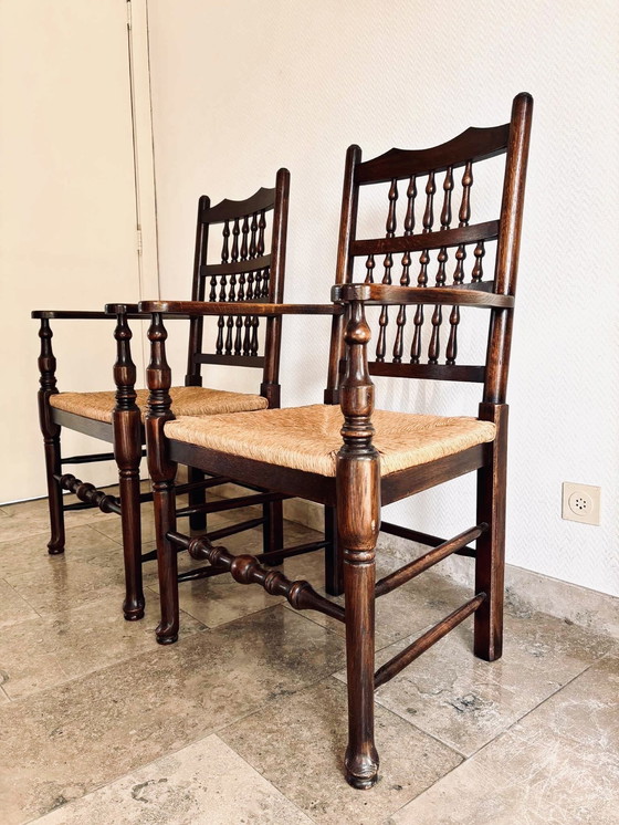 Estos sillones Harlequin Antique Spindle Back son un complemento encantador para cualquier espacio de inspiración vintage. Fabricados en madera de color marrón intenso, cuentan con un diseño clásico de respaldo en forma de huso que aporta elegancia y carácter. Los asientos son de ratán beige, lo que proporciona una experiencia de asiento cómoda y elegante. Perfectas para un rincón de lectura acogedor o como sillas de acento en un salón, estas butacas combinan funcionalidad con un diseño atemporal.