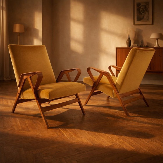 Sillones Mid Century, estructura de madera y tapizados, František Jirák, años 60-70, Checoslovaquia