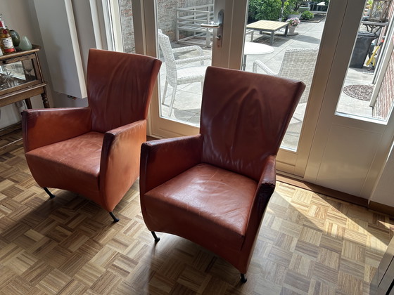 CondiciónBienColoresMarrón, NaranjaMaterialMetal, PielNúmero de artículos2MarcaMontisAltura89 cmAnchura69 cmProfundidad76 cmSignos de usoArañazos, Arrugas